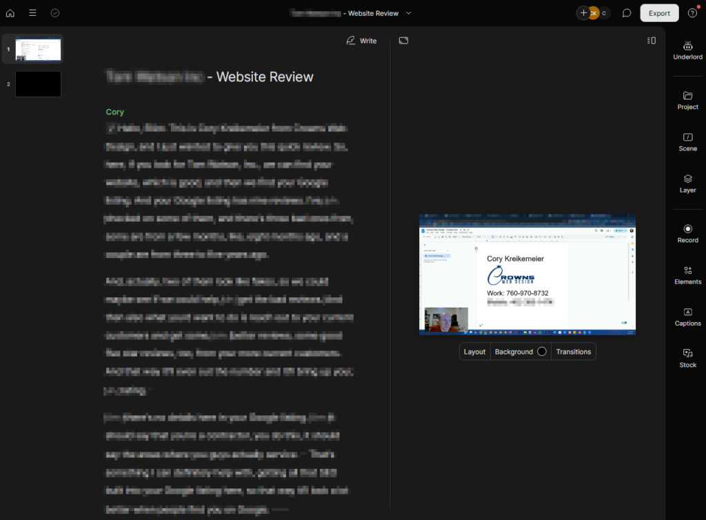 Descript includes a robust screen recording tool that allows you to capture your screen with audio narration. This feature is very useful for: